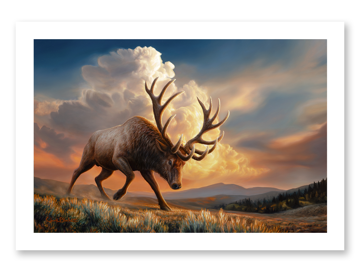 A powerful bull elk art print capturing the intensity and presence of this magnificent animal. "The Challenger" is perfect for hunters, nature lovers, and anyone seeking bold artwork that celebrates the wilderness.